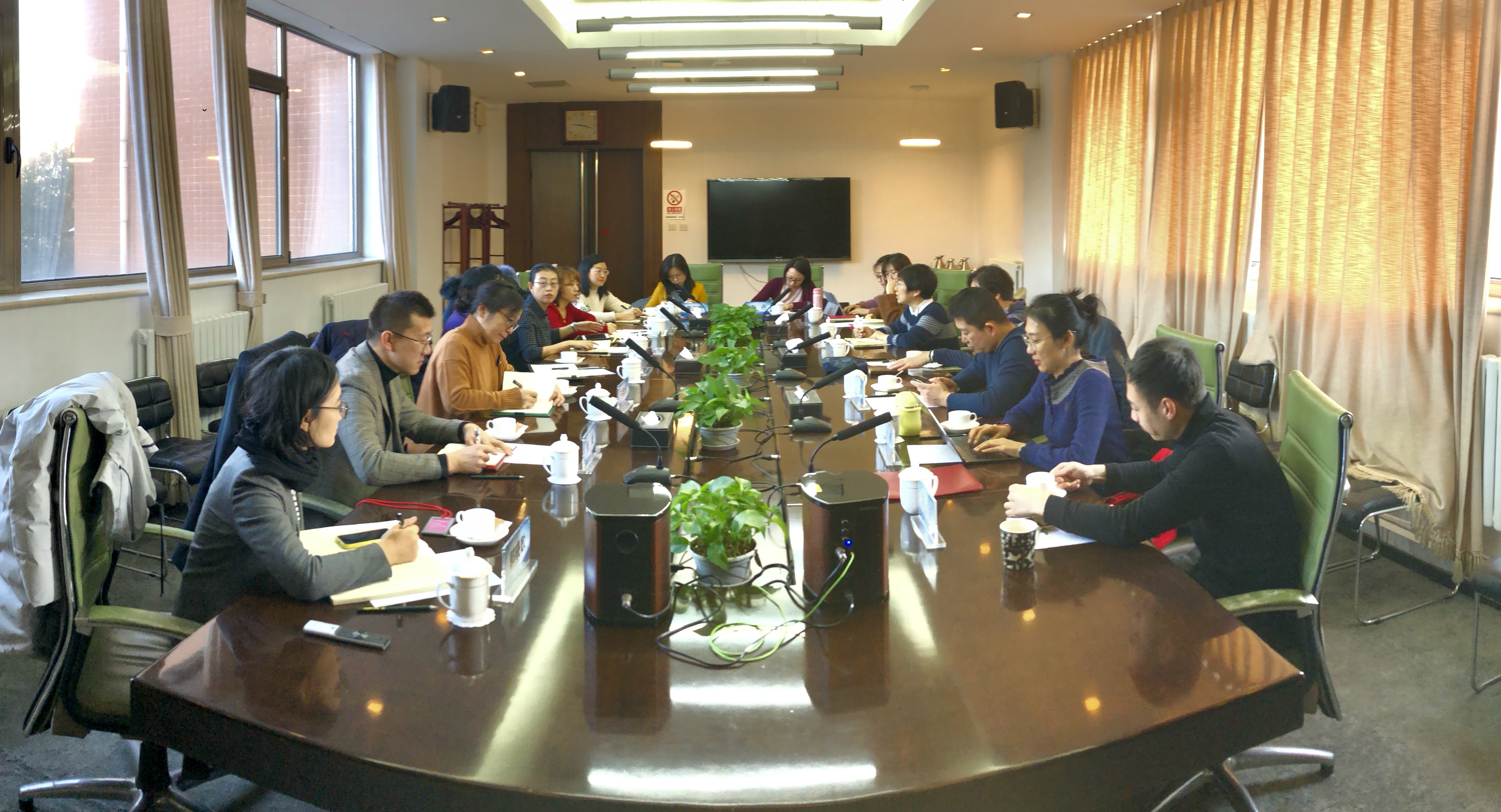 程素琴主任介绍了电视学院国新班人才培养、办公室运行管理、工会和校友会建设、社会培训服务等多方面的情况和重要举措。