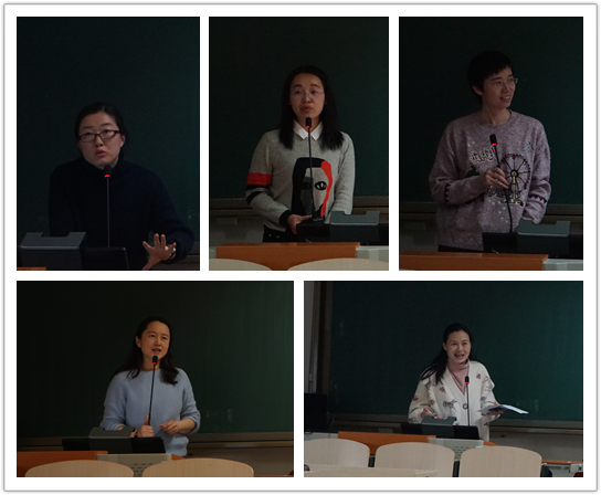 在微课展示环节,学院葛耘娜、王宇英、杨倩、吴俊和吴艳玲老师分别从不同主题、不同角度进行了风格迥异的微课展示。郑月教授、周菁教授、宋振美副教授在肯定我院老师的成绩和“惊艳”外,也提出了进一步提高的方向。