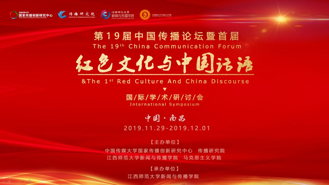 (通讯员 姜楠 程哲 龚伟亮 摄影 潘茜)2019年11月30日,第19届中国传播论坛暨首届红色文化与中国话语国际学术研讨会在江西师范大学新闻与传播学院圆满举办。此次学术会议由中国传媒大学国家传播创新研究中心、中国传媒大学传播研究院、江西师范大学新闻与传播学院、江西师范大学马克思主义学院联合举办。30日上午,论坛主会场于江西师范大学白鹿会馆进行,前后分为开幕式致辞和主旨演讲两个部分。