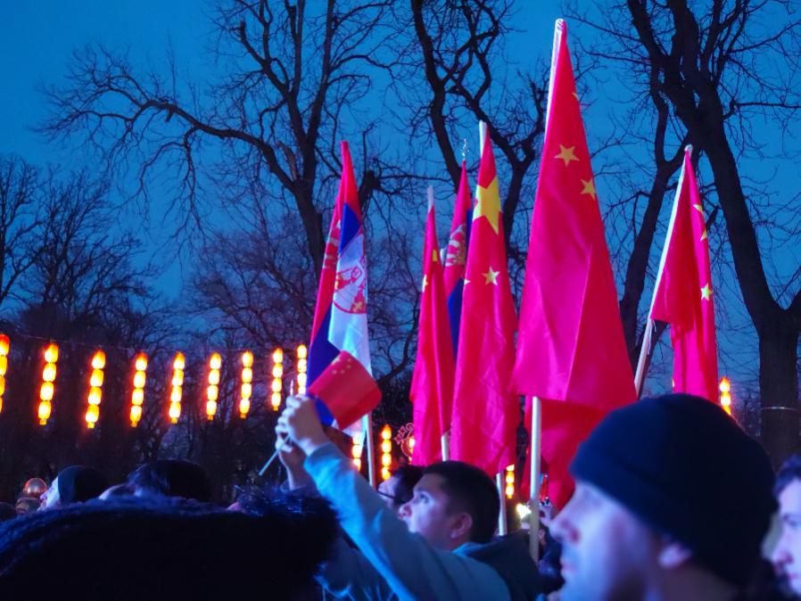 活动最后,贝尔格莱德孔子学院的学生与中国汉语教师志愿者、中国留学生共同为大家献上合唱《我和我的祖国》,优美中带着铿锵的歌声播撒着信心与感动,声援和支持着中国人民抗击疫情。现场的中国观众挥动着手中的五星红旗,跟着熟悉的旋律加入了合唱,音乐会也在这动人的歌声中落下帷幕。