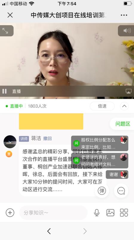 (通讯员 张海珍)2020年3月6日晚19点,中国传媒大学经济与管理学院、创新创业教育中心举办第二期大创项目在线培训活动,此次培训以《双创大赛项目的前期积淀与路演表达》为主题,邀请鱼乐娱乐创始人孟凡静作为主讲嘉宾。培训采用在线直播方式,全程吸引了1829人次观看。