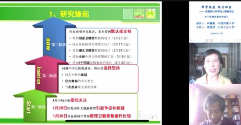 3月15日,柯惠新教授在“科学抗疫,统计担当”全国统计科学线上高端论坛发言,报告了近两个月以来所做的疫情发展态势统计工作,分享了期间作为老年志愿者遇到的困难,以及坚持下来的感悟和体会。直播间观众最多时达到5000多人。