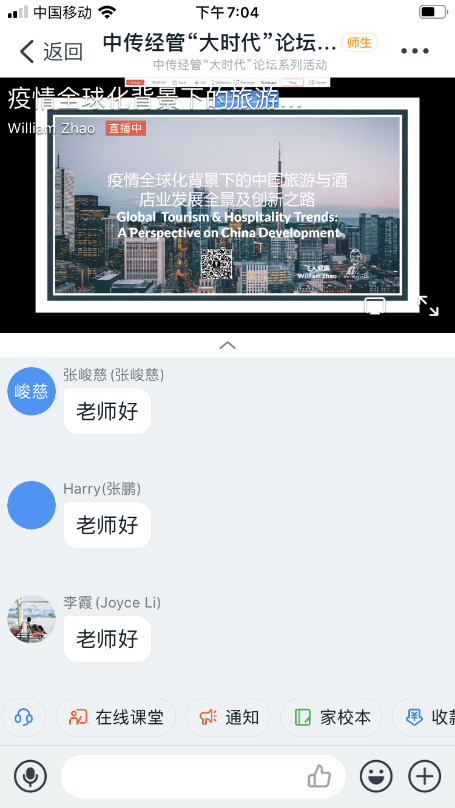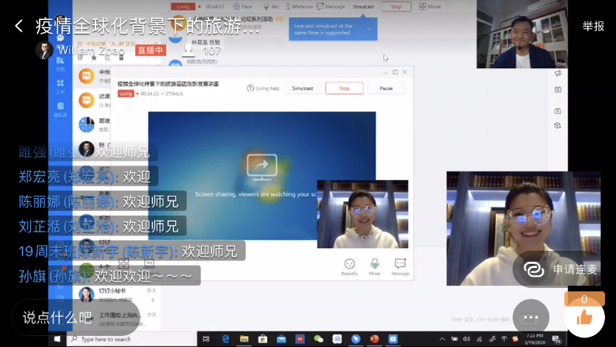 3月19日晚19点,“大时代”论坛线上直播第一期准时开讲,共260人全程在线观看。本次讲座以《疫情对于酒店旅游行业的影响及应对思辨》为主题,围绕疫情全球化背景下,中国旅游与酒店发展全景及创新之路展开,邀请了文旅酒店专家、道格特·威廉智库创始人、曾任温德姆大中华区副总裁的我校MBA校友赵晖担任讲座嘉宾。当晚,他和大家分享了“全球酒店旅游业市场格局及环境”“疫情对全球酒店旅游业的影响现状、未来预测及思考”“疫情影响下酒店旅游业的应对策略思辨”三部分内容。