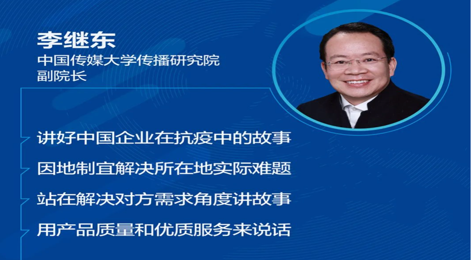 传播研究院副院长李继东教授出席了圆桌论坛“云访谈”。该论坛由中国外文局中国报道社、当代中国与世界研究院、中国外文局国际传播文化中心联合组成的“中国企业在疫情下的国际传播研究”项目组组织,依托中国企业国际传播专家咨询委员会,邀请各界专家学者参加,为中国企业国际化经营和海外形象塑造建言献策。围绕“海外突发公共卫生事件应对能力亟待提升”这一主题,李继东教授提到,中国企业海外应对疫情的行为言论,其实也是中国治理能力的一线体现,企业要基于我国信息治理能力现代化的高度来通盘考虑。这就需要广泛深入研究国际企业在应对疫情期间的经验教训,以及前一阶段国际企业如何支援武汉乃至中国的实例;及时把握当地疫情舆情,基于人类命运共同体理念,倡导集体主义精神,体现中国企业的责任与担当。