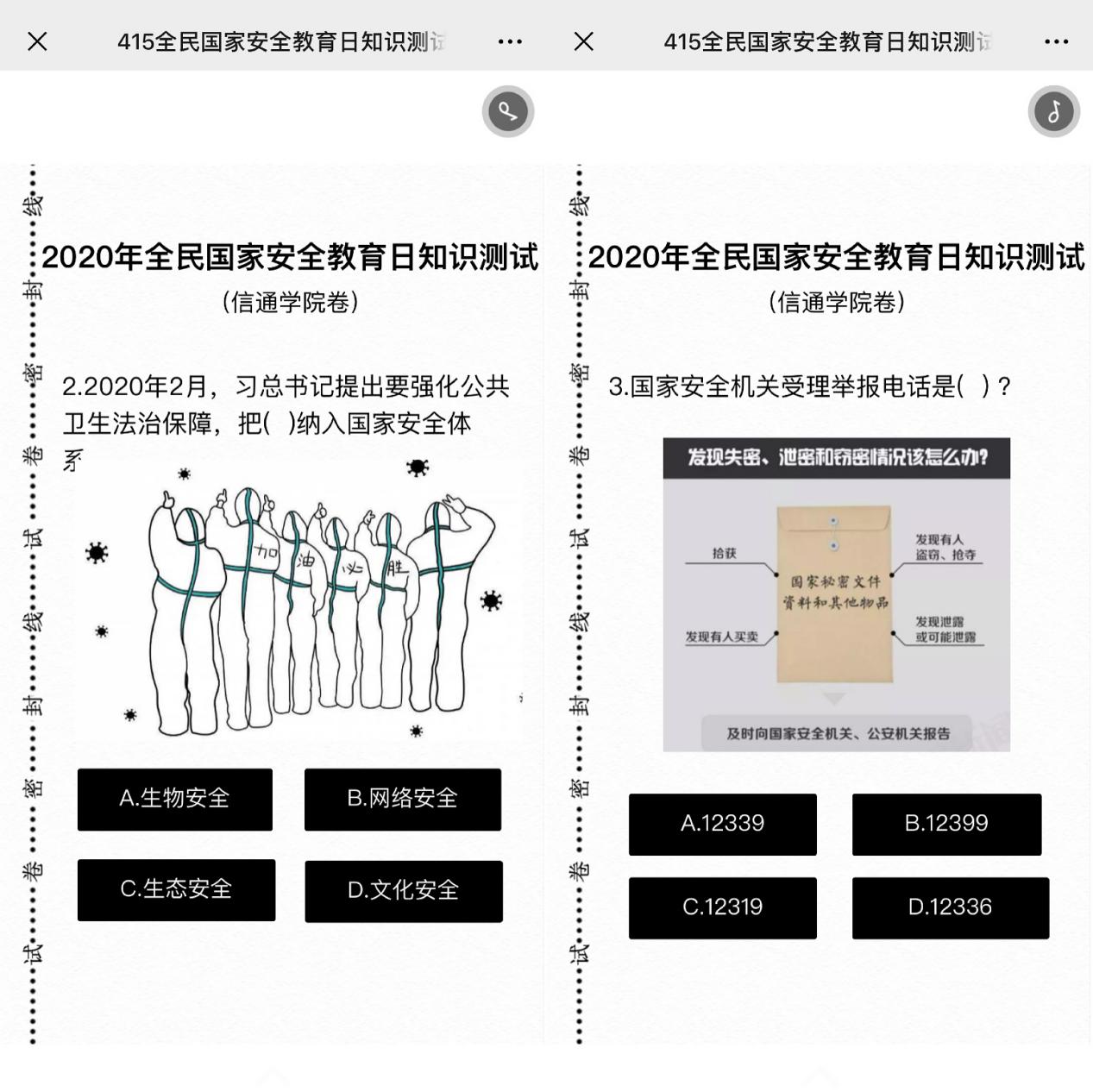 此外,大家还学习了习近平总书记2月14日在中央全面深化改革委员会第十二次会议中的重要讲话,总书记提出要从保护人民健康、保障国家安全、维护国家长治久安的高度,把生物安全纳入国家安全体系。在线学习后,信通学院党委组织教师们完成了国家安全在线知识测试,加强学习效果,让老师们将国家安全知识牢记于心。