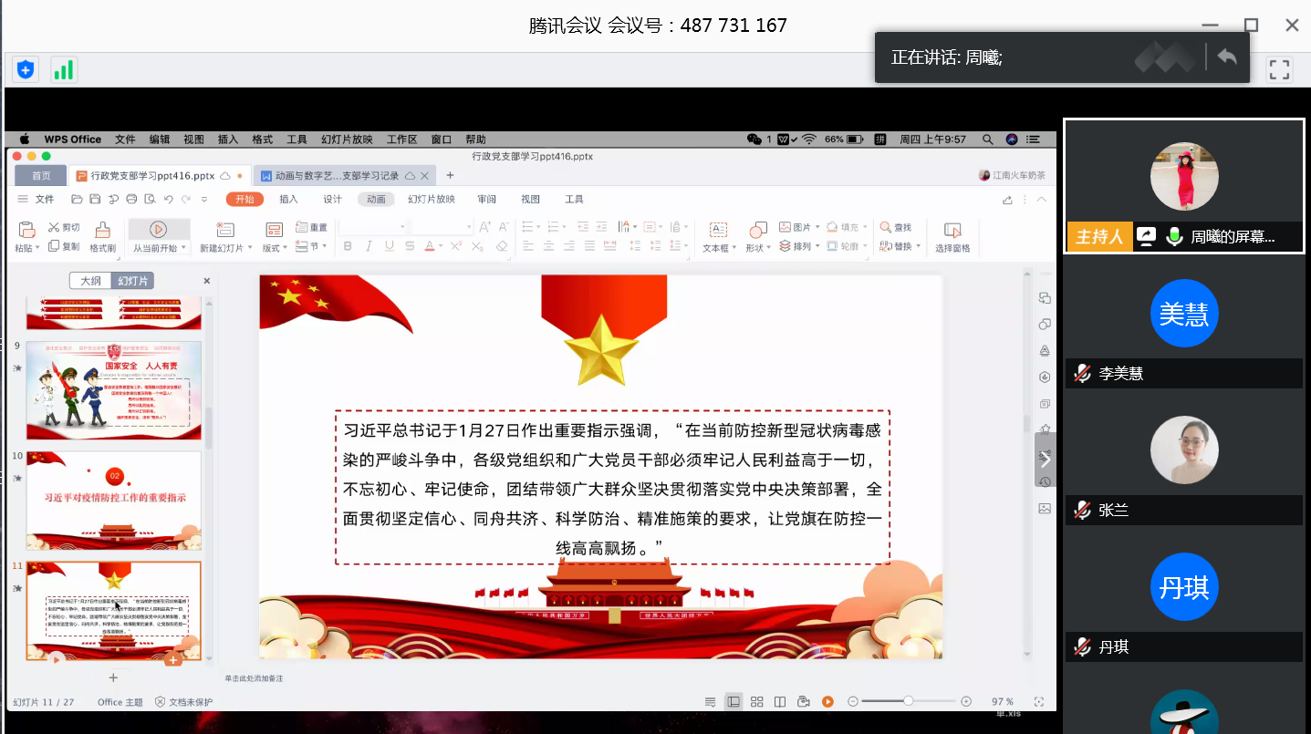 各支部积极参与学习活动,分别结合国家安全教育日以及当前疫情防控、线上教学等工作开展主题学习讨论,学习习近平总书记关于部署疫情防控工作系列讲话、习近平总书记关于总体国家安全观的指示精神,并结合实际工作,分享了各自在线上教学、疫情期间各项工作的经验和感悟,讨论如何发挥党员先锋模范作用。