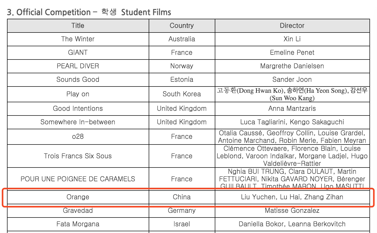 (通讯员 张若琦)近日,2020首尔国际动漫节(Seoul International Cartoon & Animation Festival)官网公布入围名单,我校动画与数字艺术学院2015级动画专业学生刘禹辰、陆海、张紫涵的作品《恶果》通过严格选拔,从来自全球91个国家和地区的2206部作品中脱颖而出,入围官方竞赛学生作品单元(Official Competition in the Student Films Category),这也是入围本届节展仅有的两部中国作品之一。