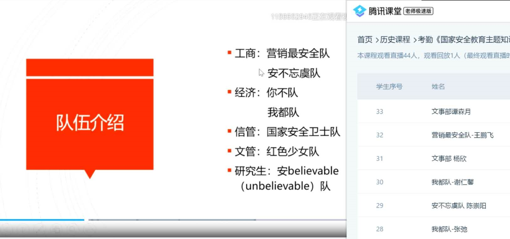 值此全民抗疫的特殊时节,学院师生们通过线上知识竞答的形式,不仅收获了比赛的乐趣,更熟练掌握了国家安全知识,树立了健康正确的国家安全观,坚定了维护国家利益的决心与信心。经济与管理学院将继续充分利用网络云教学联动机制,采取线上主题党日、团日活动的方式引导师生深入全面学习国家安全知识,有效增强国家安全意识。