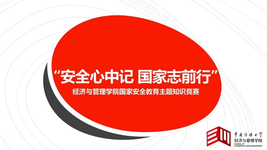 (通讯员 徐驰 郭之琰)2020年4月15日是我国第五个全民国家安全教育日,为贯彻落实习近平总书记关于总体国家安全观的重要指示,进一步增强广大师生的国家安全意识,推动国家安全教育工作的广泛开展,经济与管理学院在4月25日举行了由学院党委主办、团学承办的“安全心中记,国家志前行”国家安全教育主题线上知识竞赛,邀请学院工商管理、经济学、信息管理与信息系统、文化产业管理、研究生等党支部,组成七支队伍参赛。