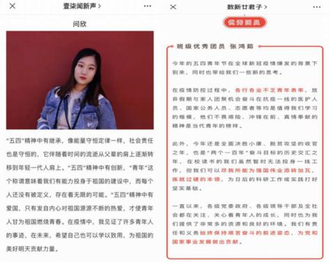 (通讯员 王晨曦 南秀渊)五四青年节到来之际,习近平总书记寄语新时代青年:坚定理想信念,站稳人民立场,练就过硬本领,投身强国伟业。总书记强调,中国青年要继承和发扬五四精神,在实现中华民族伟大复兴中国梦的新长征路上奋勇搏击。近日,我校新闻学院2017级新闻学(数据新闻报道方向)和2017级新闻学等班级组织学生在线开展了多种形式的主题学习和讨论活动。