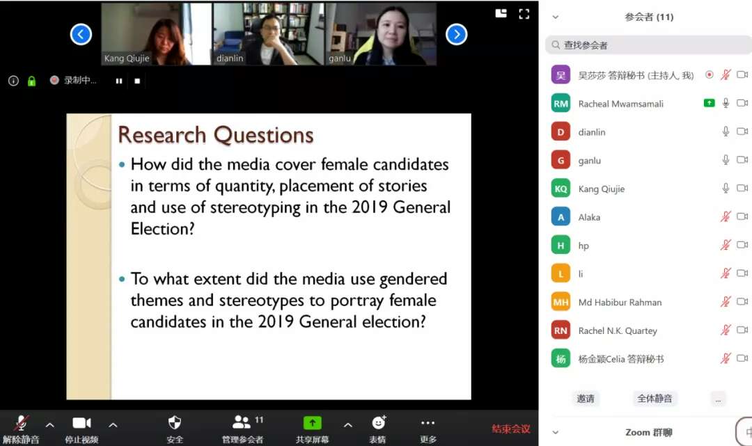 留学生进行云端学位论文答辩,突破了疫情期间的时空局限,在尽最大可能模拟线下答辩的情况下,充分发挥“互联网+”的优势,尽管问题和考验重重,但在传播研究院师生的共同努力下,留学生论文答辩顺利进行。“云答辩”既是一场考试,又是一场典礼,祝福毕业生们能成功地完成今后人生中一次次答辩,在世界各地、各行各业开启人生新篇章。