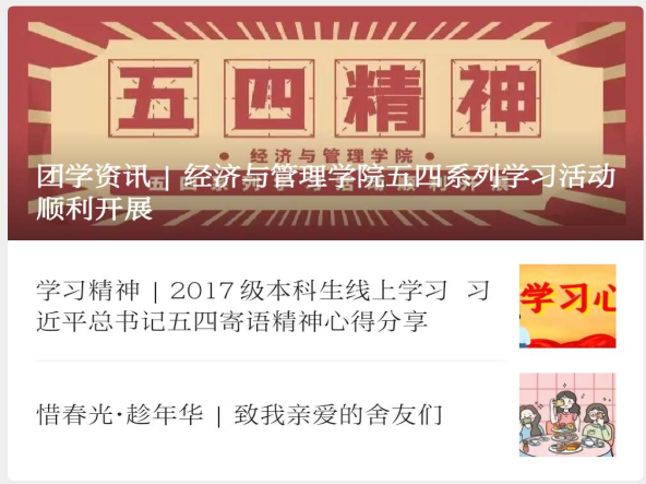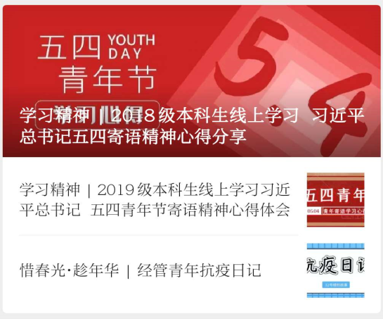 “停课不停学”的同学们也以多样的方式参与活动,学院同寝室的6位同学以一封信记录下了美好的回忆与互相的思念,推出“致我亲爱的舍友们”主题视频。来自全国各地的11位经管青年接力撰写疫情期间的“经管青年抗疫日记”,记录着平凡的抗疫的一天,将点滴小事汇聚为鼓舞人心的力量。