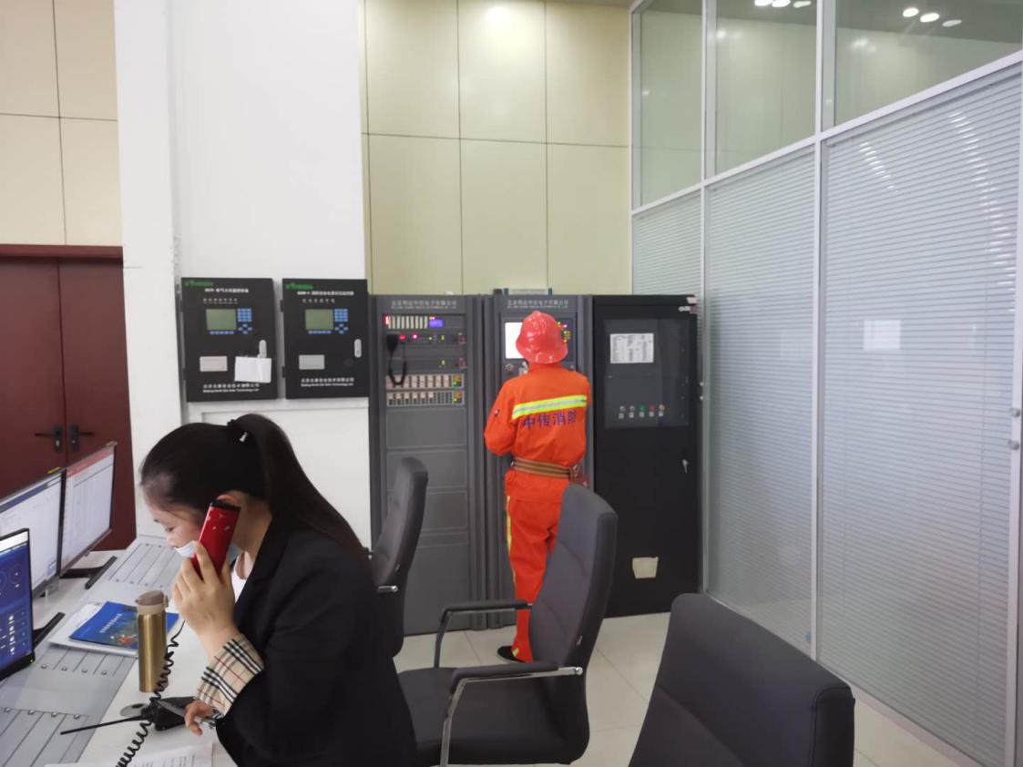 保卫处相关负责人通过安全指挥中心大屏指导灭火战斗