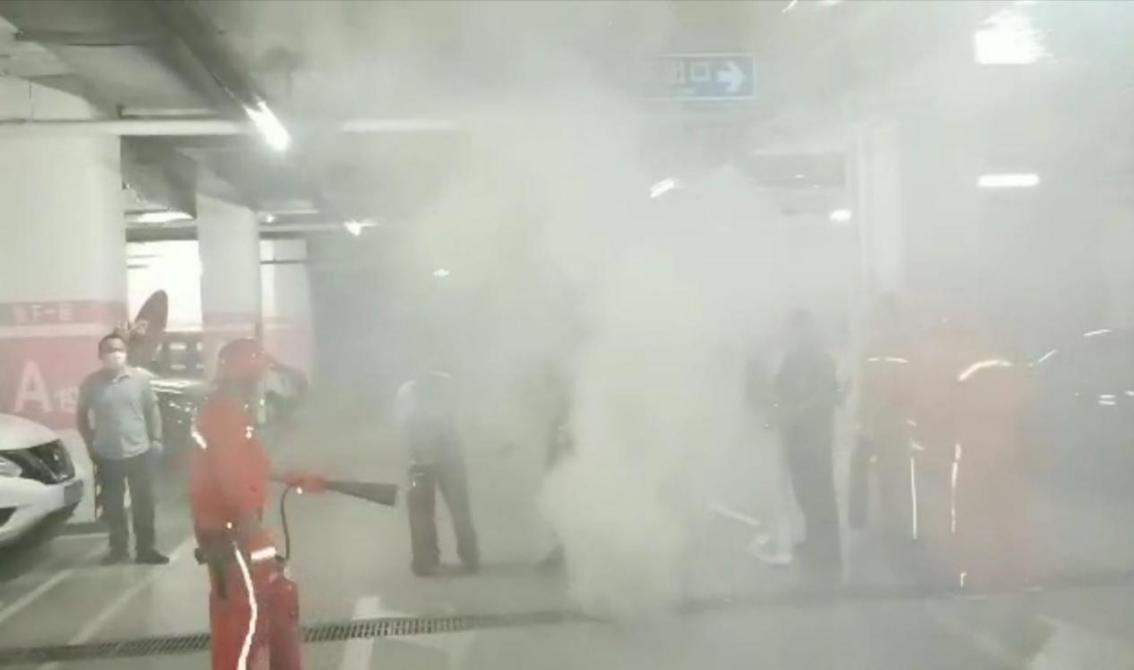 (通讯员 孟瑶)6月29日上午,一场扑救汽车自燃火灾的演练在我校南操场地下停车场展开。