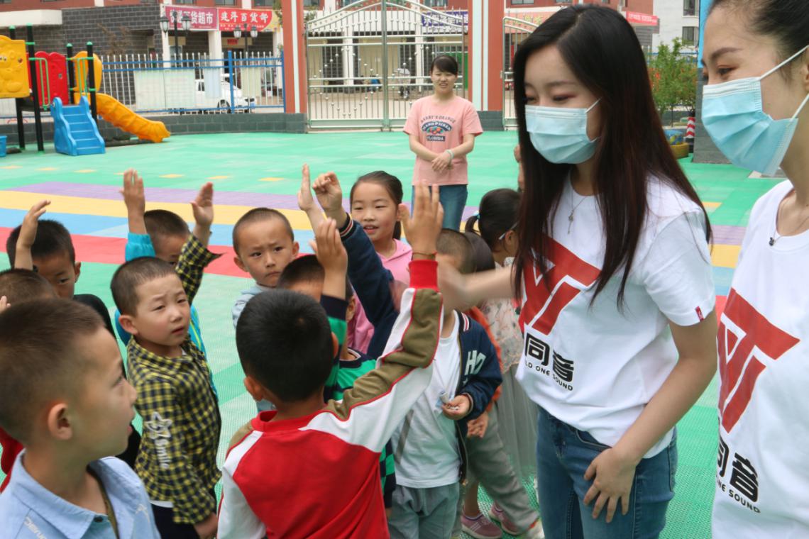 通渭县第五幼儿园的孩子们与志愿者一起讲故事