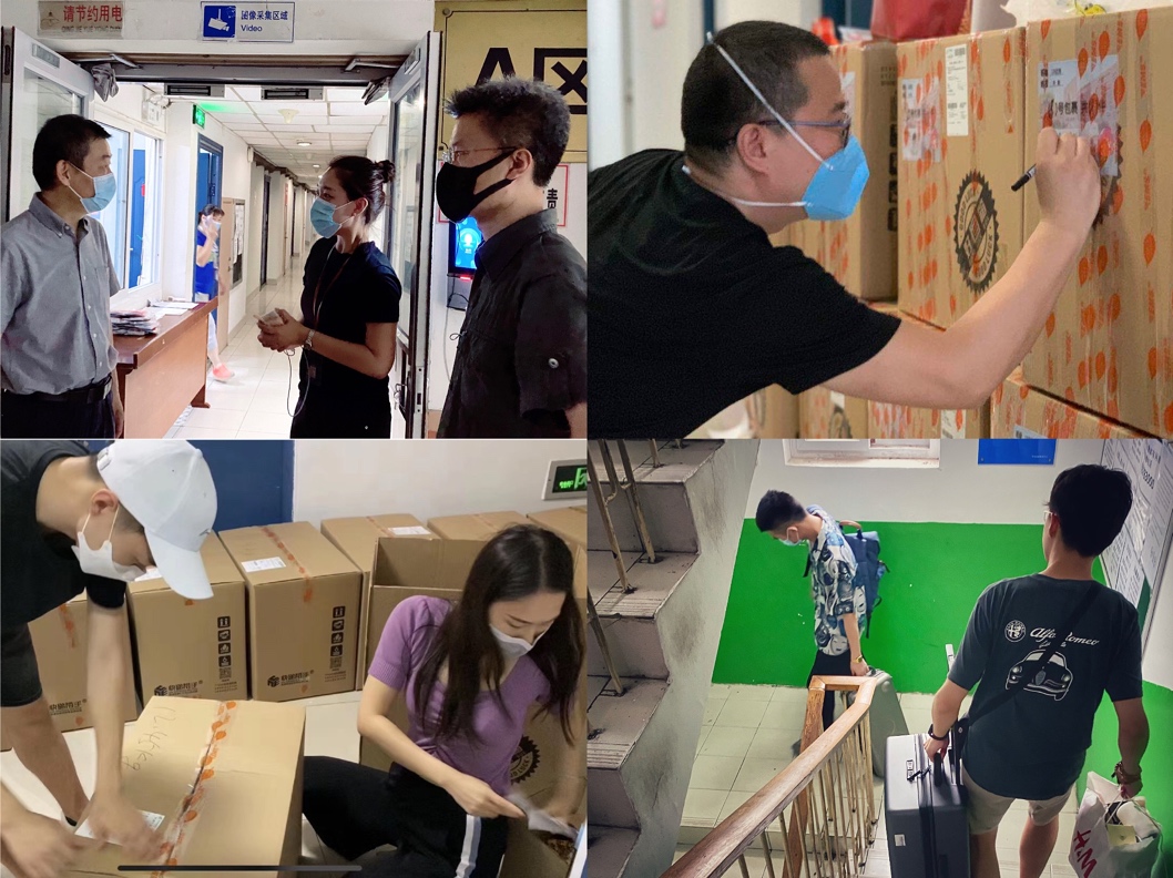 7月12日至17日及24日,学院教师与学生志愿者共完成了52间宿舍共176名毕业生的行李打包工作。学院提前一对一与毕业生沟通整理时间、邮寄地址及相关细节安排,报备入校入公寓申请清单及行李整理工作表。在装箱过程中,老师、志愿者与毕业生们一一确认清点,及时沟通意见建议。学校后勤、保卫等职能部门全力支持,整个工作过程井然有序。实时视频相连促沟通的“小水滴”、准确表明归属和件数的定制款行李签、带有中传味道的暖心盒饭,使广大毕业生倍感温暖。