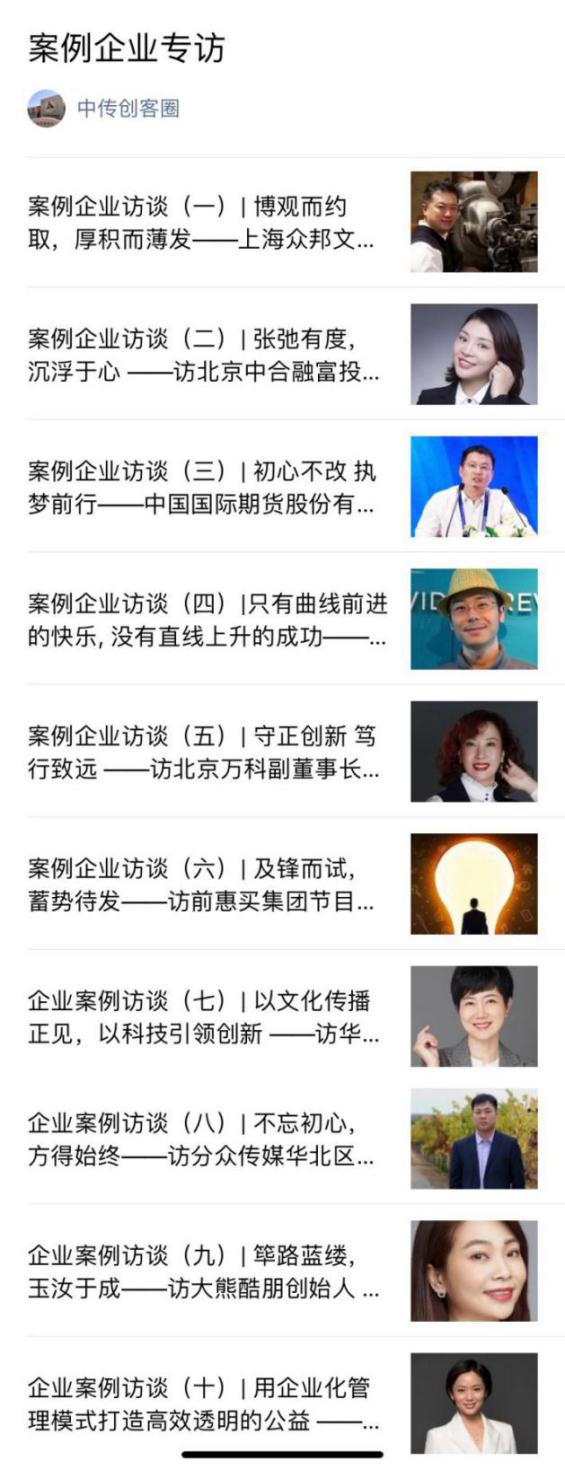 本次中传“创业者言”系列访谈活动共计十期,通过对电商、公益基金、传媒、出版、房地产、金融等众多行业的成功创业者的访谈,分享他们的创业故事、介绍他们的成功经验,为在校学生的职业发展及创业之路提供启发和帮助。