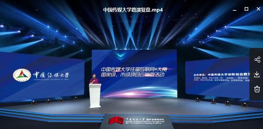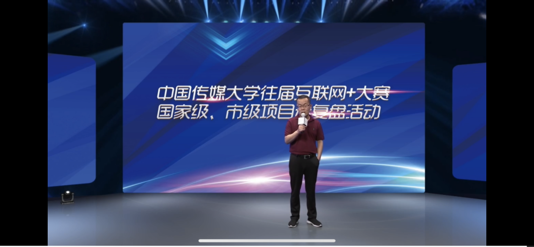 本届复盘活动以线上形式进行,采用了中广上洋全球顶尖的全媒体交互式虚拟演播室形式,将传统虚拟演播室和新媒体及图文包装相结合,虚拟与实景相融合,借助云技术实现在虚拟舞台的主持人与全国各地的嘉宾的实时互动。本次活动包括项目路演复盘、学生经验分享、国赛评委点评、往届经验复盘四个环节。