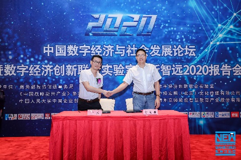 本次活动坚持以深化供给侧结构性改革为主线,坚持新发展理念,聚焦数字产业化、产业数字化、中国战略新兴产业转型升级,着力打造中国数字经济创新发展标杆,推动区域经济高质量发展,建设网络强国、数字中国、智慧社会。工业和信息化部原副部长杨学山、国务院原国有大型企业监事会主席季晓南发表了主旨演讲,商务部投资促进事务局副局长李勇等代表发起单位致辞并启动实验室2020合作计划,《中国战略新兴产业》杂志社副社长兼数字经济创新联合实验主任王磊发布了数新智远2020行动计划具体内容。在签约环节,数字经济创新联合实验室主任王磊和经济与管理学院数字经济发展研究中心兼EE中心主任孙道军教授签署了数字经济培训教育项目合作协议。