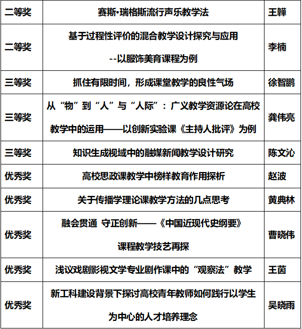 (通讯员 刘相娟)近日,北京市委教育工委、市教委、市教育工会和教育部全国高校教师网络培训中心联合举办的“北京高校第十一届青年教师教学基本功比赛论文比赛”结果揭晓,我校十名教师取得了两项二等奖、三项三等奖、五项优秀奖的好成绩。