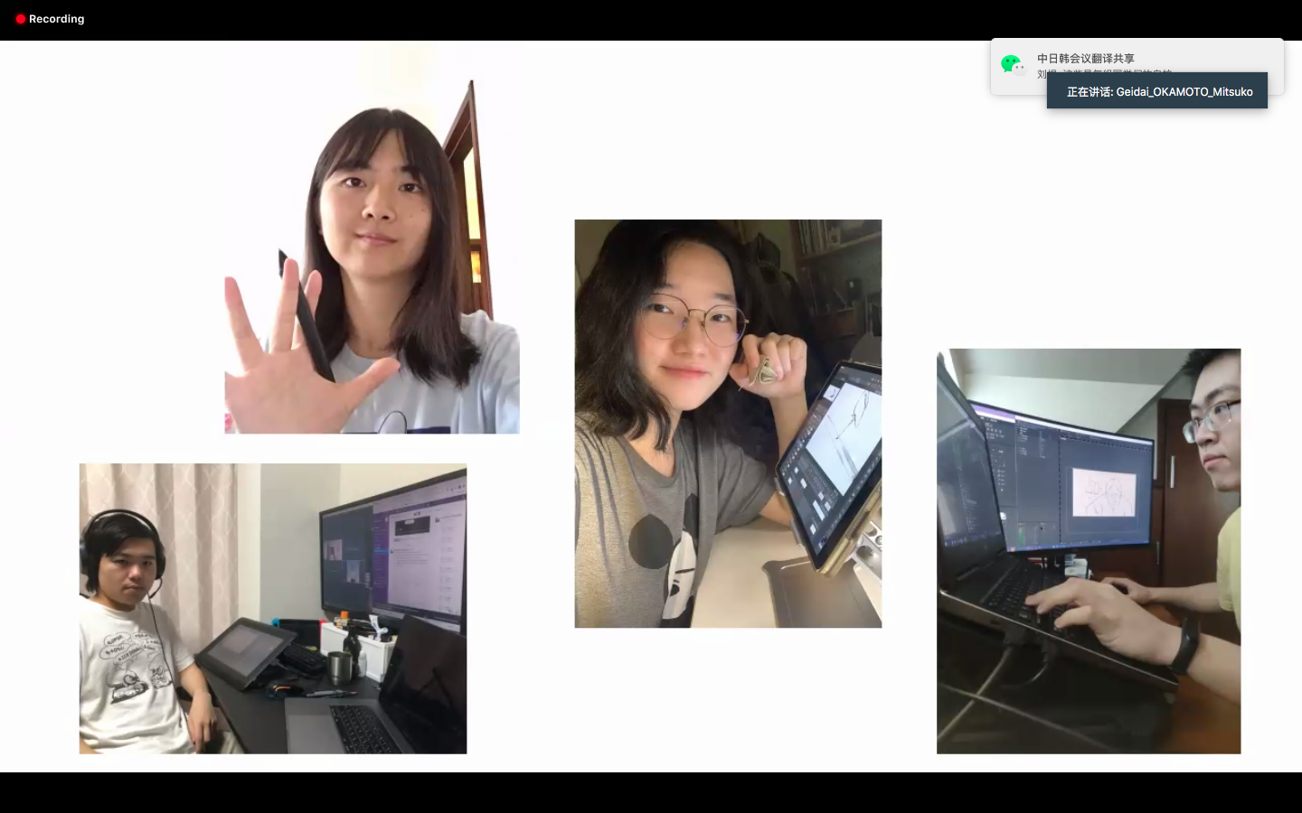 8月29日上午9时(北京时间)在线上举办项目展映会,三校教育主管部门嘉宾及往届成员共同观看了展映。教育部国际司亚非处郑晗副处长应邀观看展映,肯定了中日韩三校在“亚洲校园计划”中的努力与成绩,希望未来能够多探索新的沟通方式,推动中日韩文化交流的全方位发展。三校“亚洲校园计划”负责人——我校科研处处长贾秀清教授、东京艺术大学副校长岡本美津子教授,韩国艺术综合大学动画系主任李廷珉教授分别发言,祝贺展映成功举办。
