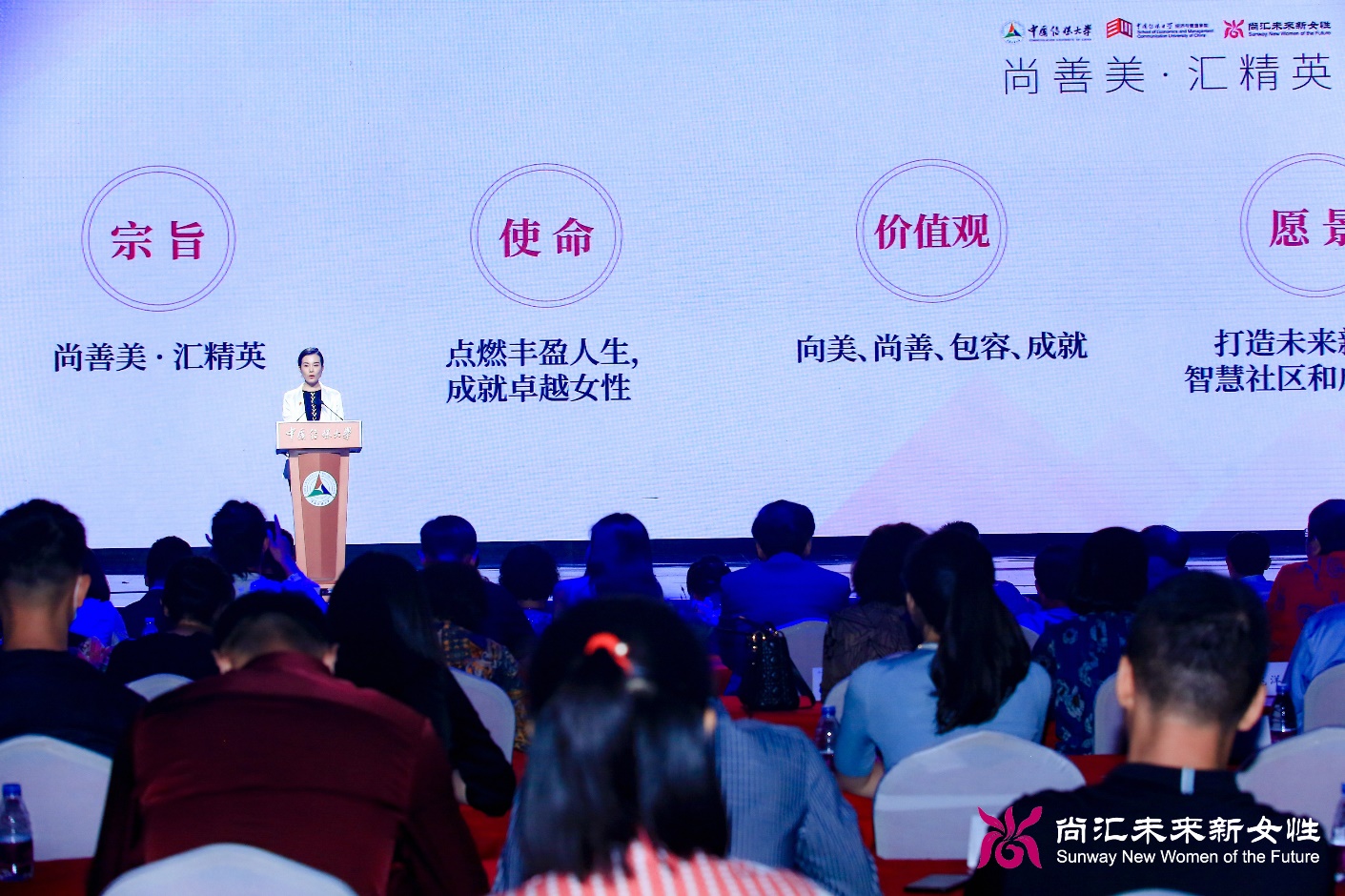 “尚汇未来新女性”项目主任王田田在主旨发言中阐述了自己创办项目的初衷,并对项目进行了详细介绍。她表示,家庭幸福依靠女性的呵护,社会和谐需要女性的付出,国家发展呼唤时代新女性的助力。项目聚焦全媒体时代下“挖掘女性传播潜能”“发挥女性管理学优势”“商业向善”三大主题模块,课程设置女性心理学、女性形象打造与语言表达、内在修为与美学品鉴、女性领导力、战略洞察与媒介应用、商业创新与向善等六大核心课程,以及毕业礼环球奇观频道演播厅录制实践,全方位提升女性内在修为与媒介素养,打造有媒体影响力的IP,培养向美尚善的新时代女性典范。