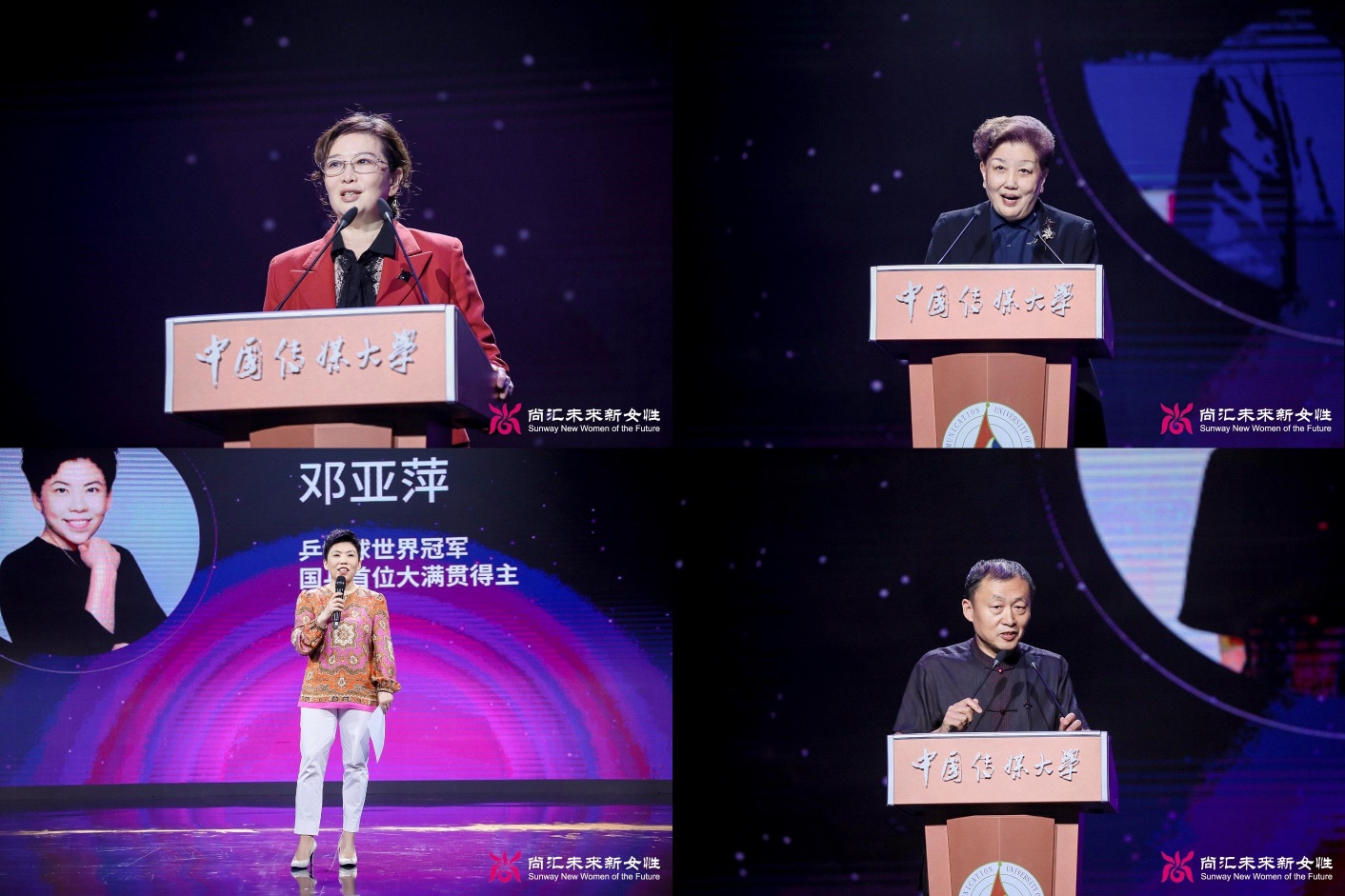 中国军事文化研究会理事杨杨少将,国资委中国民族贸易促进会执行会长、中国高科技产业化副理事长刘延宁,乒乓球世界冠军邓亚萍,清华大学公益慈善研究院院长王名等与会领导和嘉宾就新时期女性成长和社会未来发展等话题作了不同角度的主题发言,对女性在全媒体时代的发展空间和发展方向发表了独到见解,对中国传媒大学经济与管理学院“尚汇未来新女性”项目给予了充分肯定和殷切期望。