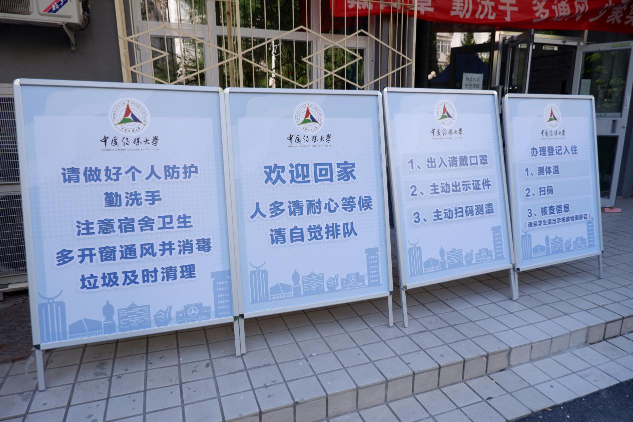 “跨越山川湖海,中传迎你到来”“亲爱的小白杨,欢迎回家”……在返校报到现场、主要道路、宿舍楼、餐厅等地摆放或悬挂着欢迎标语、条幅,气氛温馨。在窗明几净、焕然一新的餐厅,工作人员耐心地引导大家扫码登记,单向进出,使用流动水或免洗洗手液洗手、消毒,有序安心就餐。