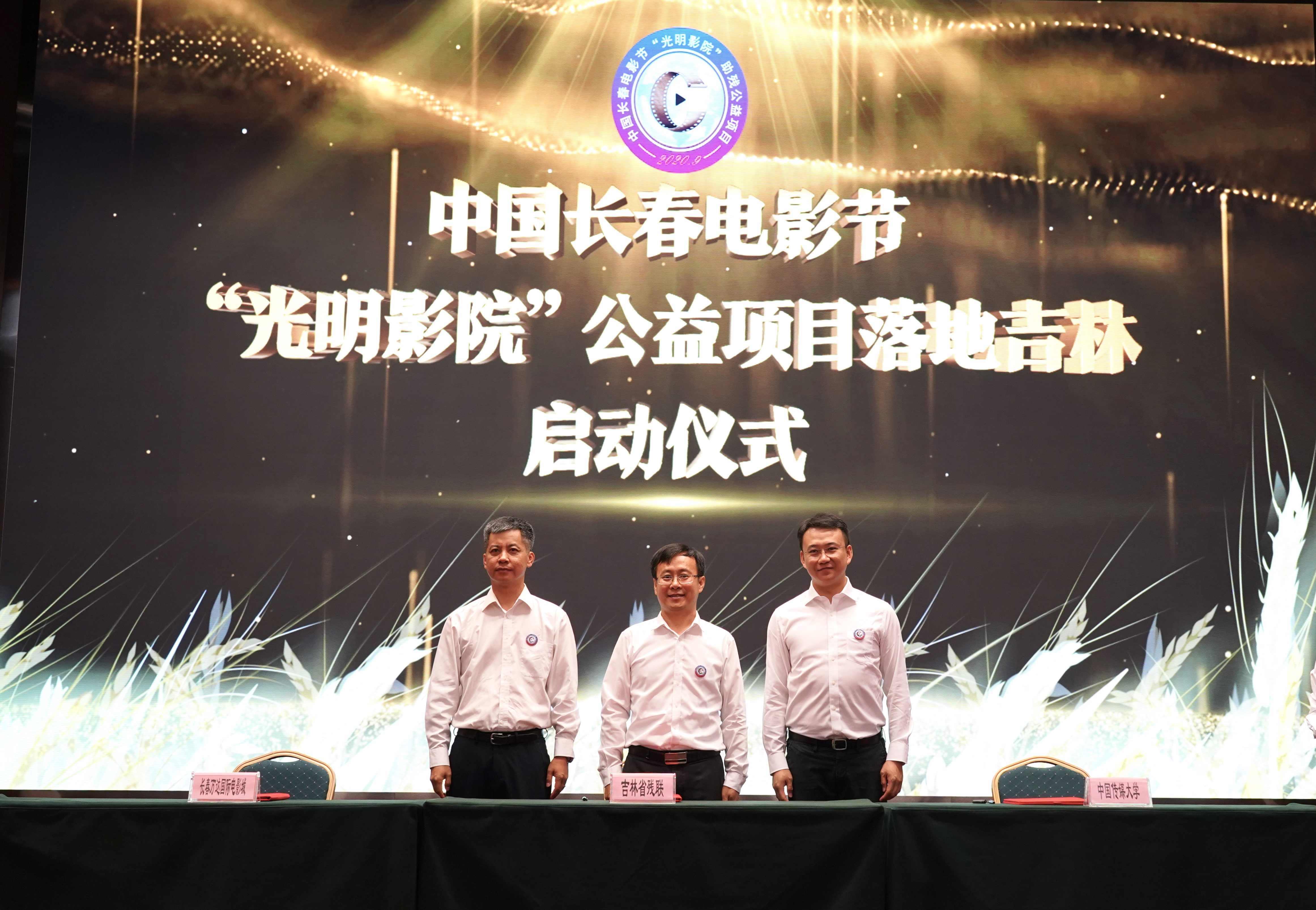 中国传媒大学、吉林省残联、长春万达国际电影城有限公司共同签订了《“光明影院”公益项目落地吉林合作协议》,长春市朝阳区、宽城区、经开区和净月区残联负责同志分别与辖区内5个影院签订了《“光明影院”公益放映协议》。