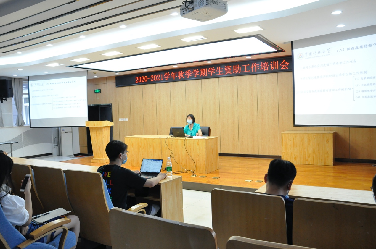 (通讯员 伍玮 摄影 孙锐雯 谭卓越)在新学年开学之际,9月9日上午,为传达教育部学生资助工作会议精神,进一步明确我校迎新阶段和秋季学期的资助工作重点,总结工作经验、提高工作效率,我校学生工作部学生资助中心组织召开了2020-2021学年秋季学期学生资助工作培训会,学生工作部副部长李萍、学生资助中心工作人员、各学院资助工作联系人参加了会议,学生资助中心伍玮老师主持此次培训会。