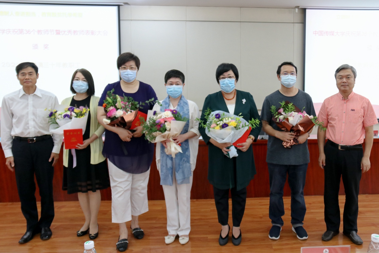 陈文申书记指出,今年,国家将第36个教师节的主题定为:立德树人奋进担当,教育脱贫托举希望。这个主题有着特殊的含义和背景。这一年我们面对突如其来的疫情影响,在党中央国务院的坚强领导下,全国1700余万大中小学教师经受了严峻的考验,开展了一场史无前例面向2.8亿学生的大规模在线教育实践,有效实现了不停课、不停学,为中国特色的复学复课、为打赢疫情防控总体战、阻击战谱写了一曲特殊的交响乐。在这次战役中,我们的广大老师以高度负责的精神,转战线上教学,特别是通过在线答辩等方式让毕业班的同学们顺利完成学业,精心组织了独具中传特色的云上毕业典礼,广大教师在近40度高温下深入宿舍一线开展“毕业寄”工作,体现了教师教书育人的大爱,更体现了“立德树人”的根本。同时,作为今年教育部新增的定点扶贫高校,学校党委举全校之力,认真落实党中央和教育部党组的扶贫攻坚任务,充分发挥学校学科的优势,助力科右前旗脱贫攻坚。各相关部门和学院的同志们多次赴科右前旗对接、推动帮扶工作,取得了非常可喜的成果,得到了当地政府和人民的高度认可。扶贫干部刘京晶、安明泰两位同志,深入基层、排除万难,运用自己的专业所长到艰苦的地方创造性地开展工作。这样的精神,便是这次教师节的主题所弘扬和提倡的。