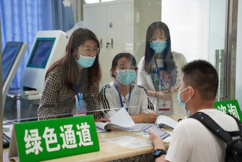 根据疫情防控常态化要求,今年“绿色通道”采用全部线上办理、线下领取物资的方式进行,提高了办理效率,并在本专科、研究生及高职新生报到的5天时间内,开设专门窗口,随时提供服务。新生可提前通过迎新系统中的“绿色通道”功能,提交线上申请。审核通过后,新生便可在报到当天直接到“绿色通道”现场领取爱心物资。同时,没能及时在线上申请的新生也可以在窗口补办申请,保证每一个新生都能安心顺利办理入学手续。