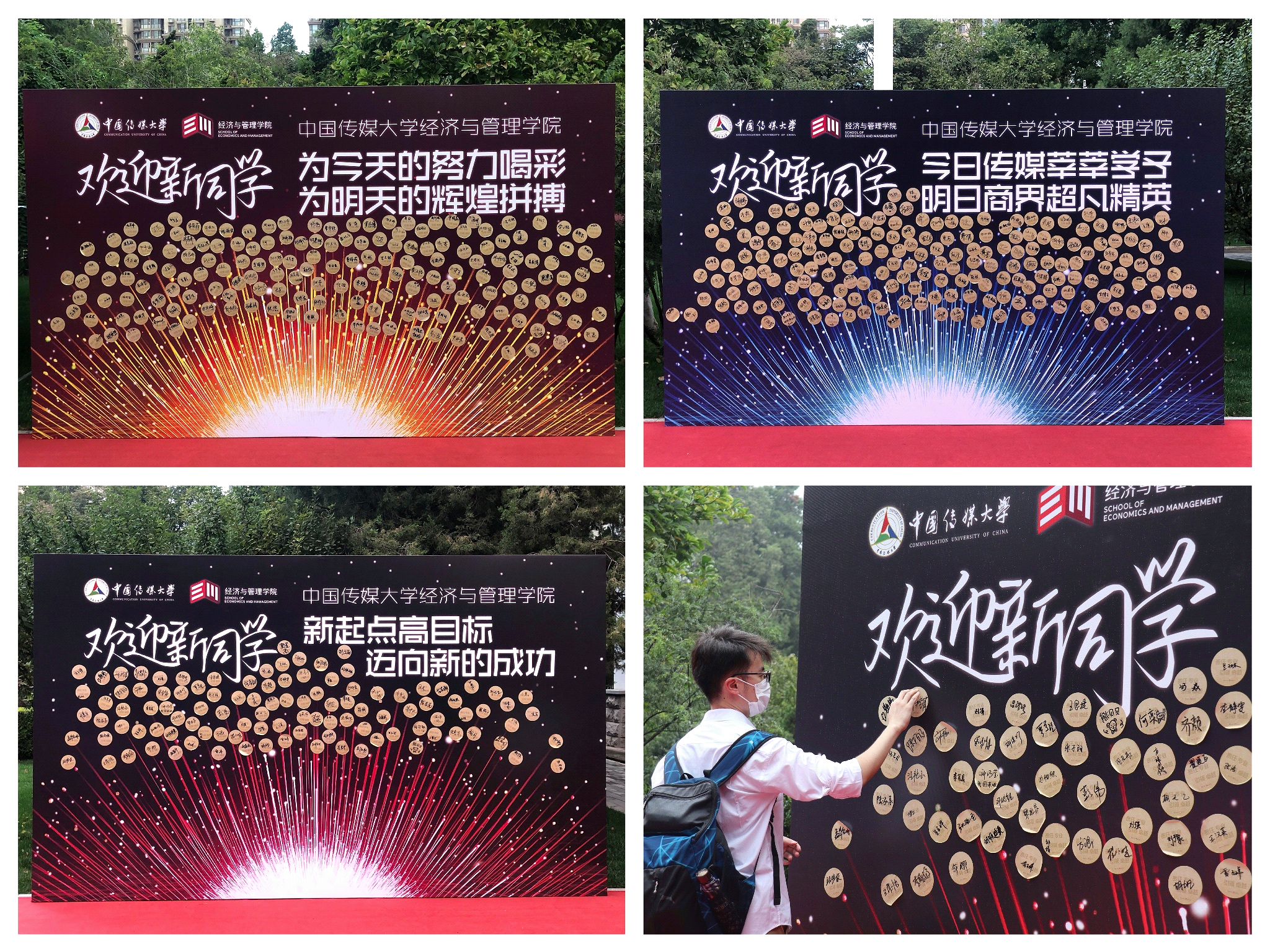 “一意”是指学院在报到过程中以丰富的形式培养学生立志高远、奋斗追梦的意识。学院设计三块分别针对本科、MBA以及学术硕博的“励言墙”,“为今天的努力喝彩,为明天的辉煌拼搏”、“今日传媒莘莘学子,明日商界超凡精英”、“新起点、高目标,迈向新的成功”等标语鼓舞新生在入学时树立目标,专注目标,实现目标。同时设置学院介绍喷绘,方便新生从学院概况、师生情况、学科专业、科研成果、组织架构、学生活动等方面整体了解学院情况。