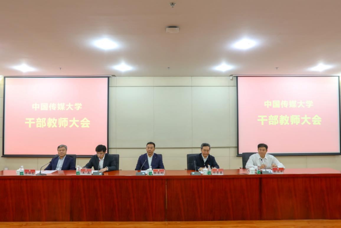 9月28日上午,中国传媒大学召开干部教师大会。教育部人事司司长张东刚同志在会上宣布了中共教育部党组关于中国传媒大学党委书记的任免决定,廖祥忠同志任中国传媒大学党委书记,因年龄原因,陈文申同志不再担任中国传媒大学党委书记、常委职务。