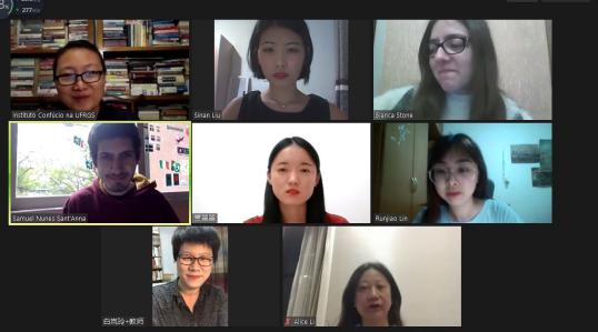 孔子学院中方院长、人文学院白岚玲教授,带领三位志愿者教师、我校汉语国际教育硕士刘思楠、林润娇和贾翠翠,以及拟赴任的公派教师、我校继续教育学部武雅琴老师,组成了本学期远程汉语教学师资队伍。此外,学院另有两位巴西本土教师,中巴双方教师优势互补,在新学期努力提升网络教学的质量和水平。目前,巴西疫情尚未明显好转,孔子学院正在变被动为主动,化疫情危机为发展机遇,齐心协力,克服困难,将学院事业继续推向前进。