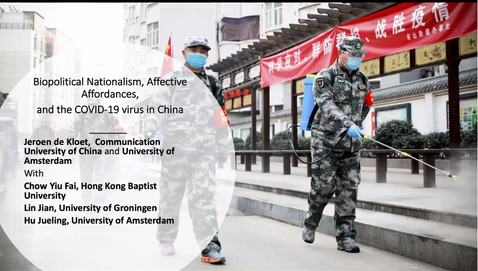 荷兰阿姆斯特丹大学Jeroen de Kloet教授的主题演讲围绕《生物政治民族主义、情感启示与中国的新冠疫情》展开。通过比对各国疫情的发展情况,不难看出只有严格的管控才不会导致情况的失控。病毒不仅仅会被传染和感染,也会传播无从检测的惶恐与焦虑,公民骄傲于自己所在国施行的“最佳”和“最有效”的疫情控制办法。由此,公民的“生物政治民族主义”可以在躯体、地缘政治、情感间被动态理解。福柯关于“生物政治民族主义”的概念源于其作为一种重要的工具来进行国家与资本权力的运作,来用于管理人口以及更远大的用途。