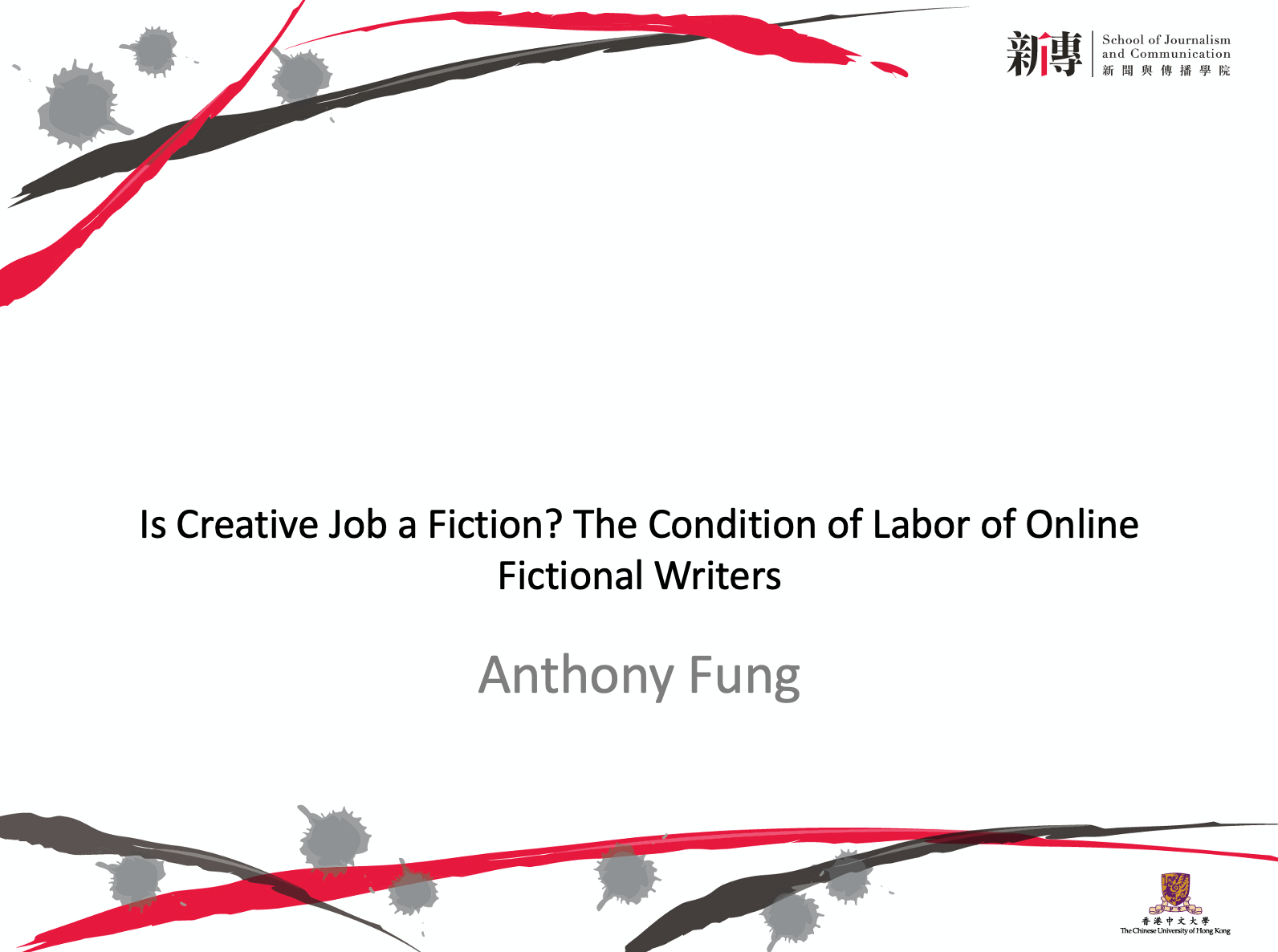 当日下午举办的第二场主旨演讲——“后疫情时代下媒体传播的新趋势与特点”由张磊教授主持。香港中文大学Anthony Fung教授就《创造性工作是虚构的吗?网络小说作家的劳动条件》进行了主题演讲。该研究通过收集近四百位网络小说作家的问卷,分析得出——网络小说作家这份顶着“创意”名号的工作,背后暗藏的却是资本的剥削。许多作者以极为低廉的价格和不稳定的劳务关系进行小说的写作,但他们却享受这种充满世界主义的生活方式。