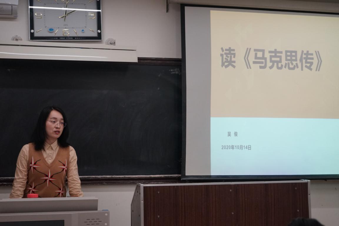 (通讯员 张鑫)秋风送爽,丹桂飘香,10月14日下午,马克思主义学院在立德楼505教室成功举办“《马克思传》之遇见马克思”新生读书会。本次活动积极响应了廖祥忠校长“好好做个读书人”的殷切嘱托,为新生主题教育活动画下圆满句号。读书会由吴俊老师主讲,马克思主义学院2020级全体研究生新生参加,共同分享学习心得与体会。