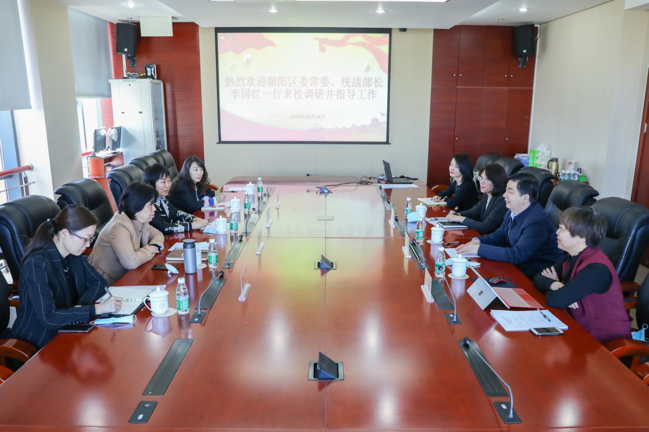 听取汇报后,李国红部长对我校统战工作给予高度肯定。她指出,高校是党外知识分子的聚集地,是统战工作的战略要地。一是希望学校继续搭建平台,积极向朝阳区推荐优秀人才,充分发挥高校智力优势,服务社会发展;二是希望继续依托学校资源优势和特色专业,加大经济产业发展,形成产业走廊,辐射周边地区,带动地区经济发展;三是希望进一步加强校地合作,建立健全校地联动工作机制,畅通信息渠道,加强交流。