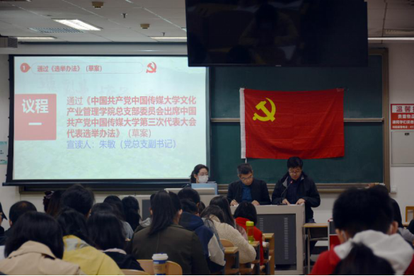 大会上,党总支副书记朱敏同志宣读了《中国共产党中国传媒大学文化产业管理学院总支部委员会出席中国共产党中国传媒大学第三次代表大会代表选举办法(草案)》,并提交大会通过。大会还通过了总监票人、监票人、计票人名单。