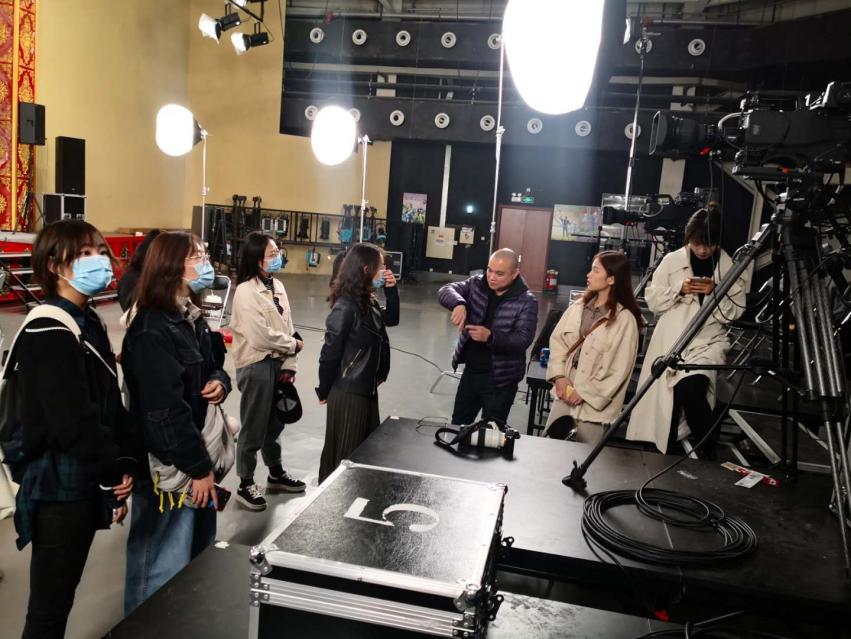中场休息阶段,现场人员向同学们演示了各个摄影机的不同功用及操作方法,同学们近距离地观摩和学习了专业录制设备的使用。