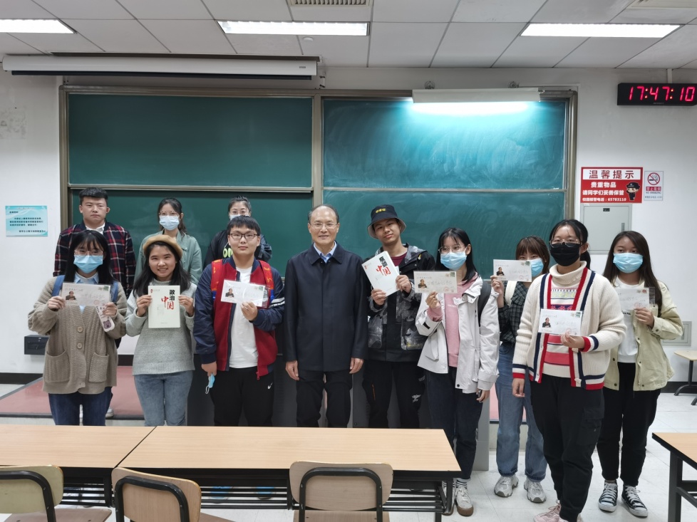 精彩的讲座后,公方彬教授赠送同学们亲自签名的最新力作《瓶颈中国》以及纪念邮简,并与获赠同学进行了合影。