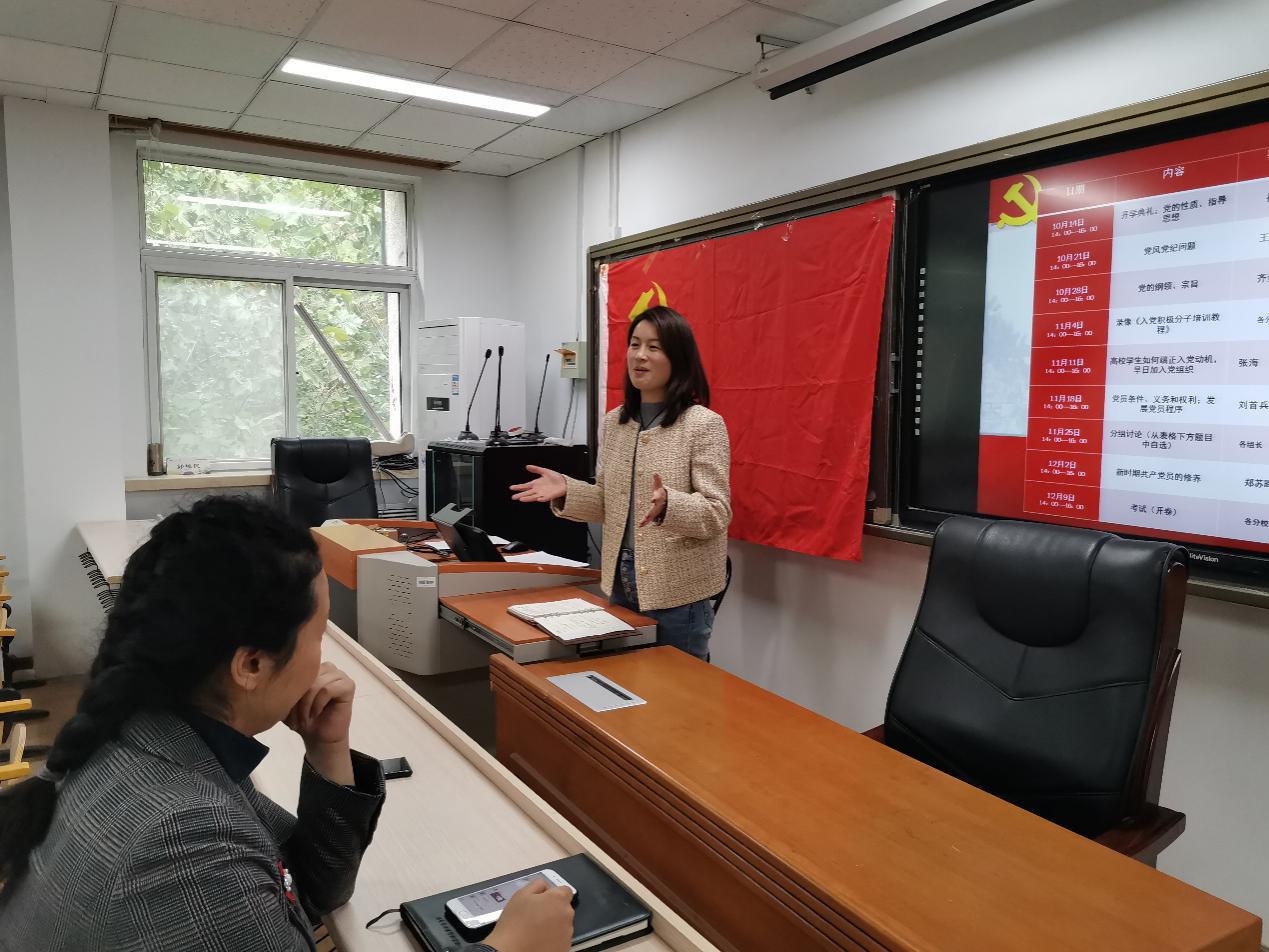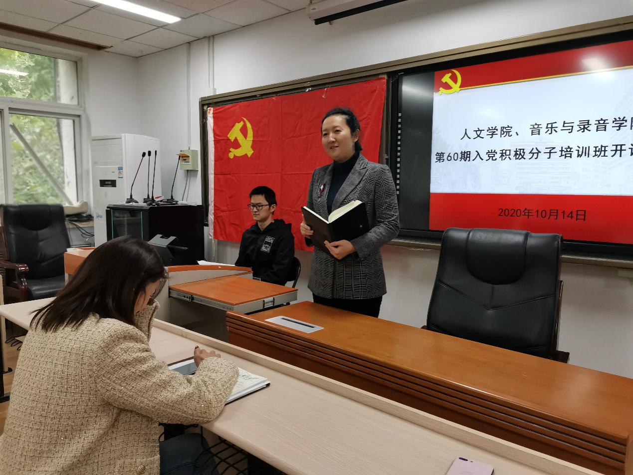 音录学院党委副书记樊娜老师布置本次入党积极分子培训班课程安排。樊娜副书记表示,分党校师资力量强大,希望学员们珍惜机会、努力学习,并期望与人文学院继续保持友好合作关系。