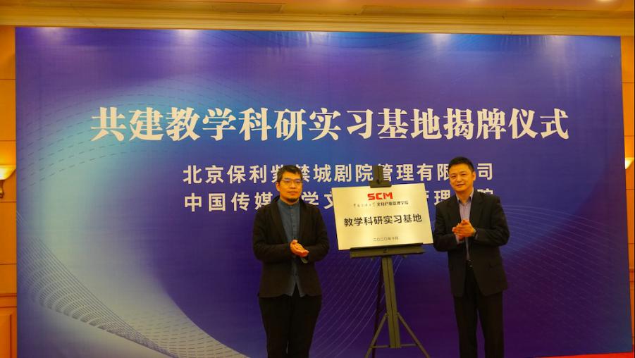 保利文化集团股份有限公司党委副书记、纪委书记徐碚,中国传媒大学文化产业管理学院党总支书记卜希霆为共建教学科研实习基地揭牌。