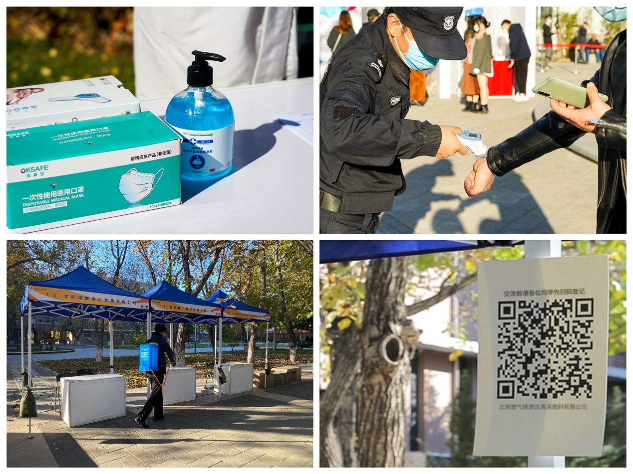 本次双选会采取限流开放、预约入场的方式,对场地进行封闭管理。安保人员和学生志愿者共同完成现场消毒、体温测量、健康码查验等工作,并为参会人员提供引导服务和口罩、洗手液等防疫物品。国有资产管理处、保卫部、后勤管理处、校医院等单位协同联动,共同保障双选会有序进行。
