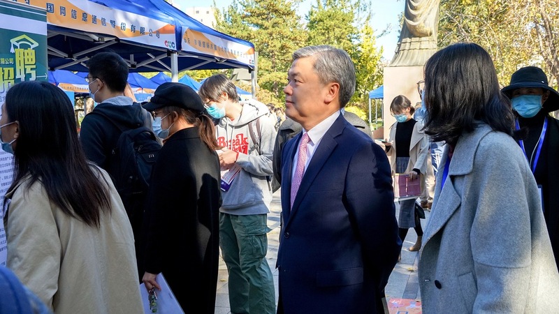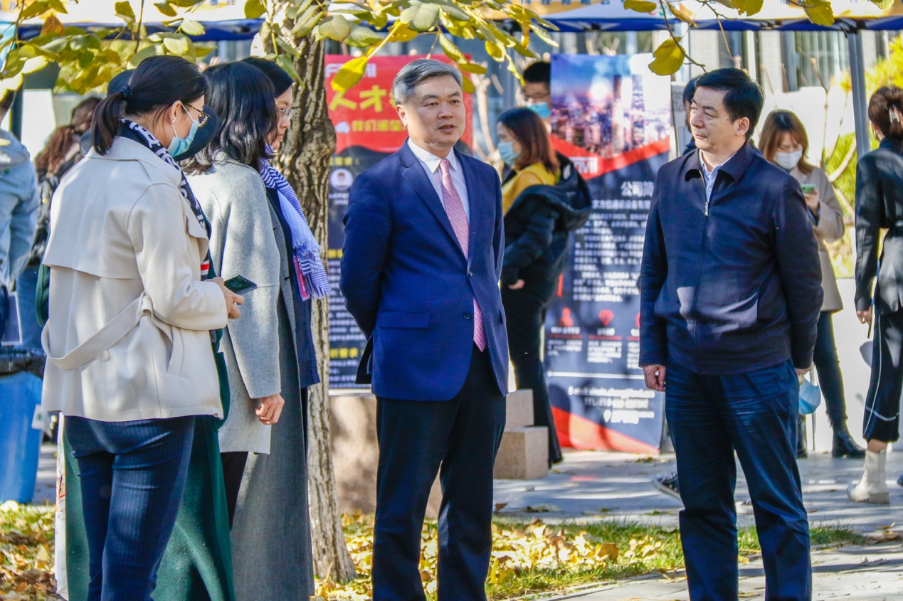 此次双选会是我校在疫情防控常态化背景下举办的首场线下大型招聘活动,党委书记、校长廖祥忠,党委副书记姜绪范来到现场。他们充分肯定了双选会的筹备工作,并与同学们、用人单位代表亲切交流。