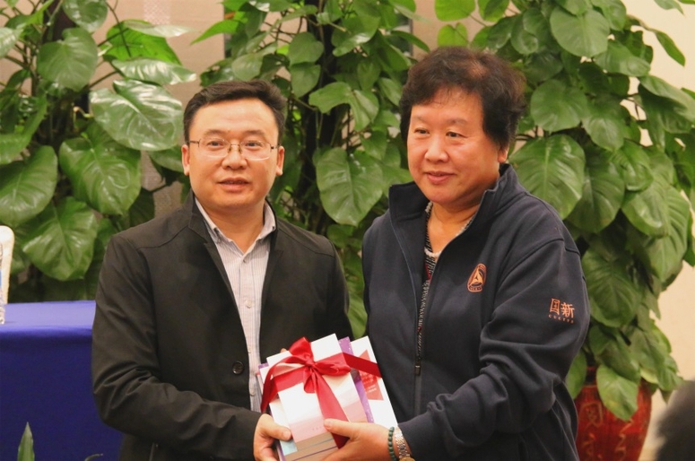 校务委员会副主任胡芳(右)向湖南省委宣传部赠书