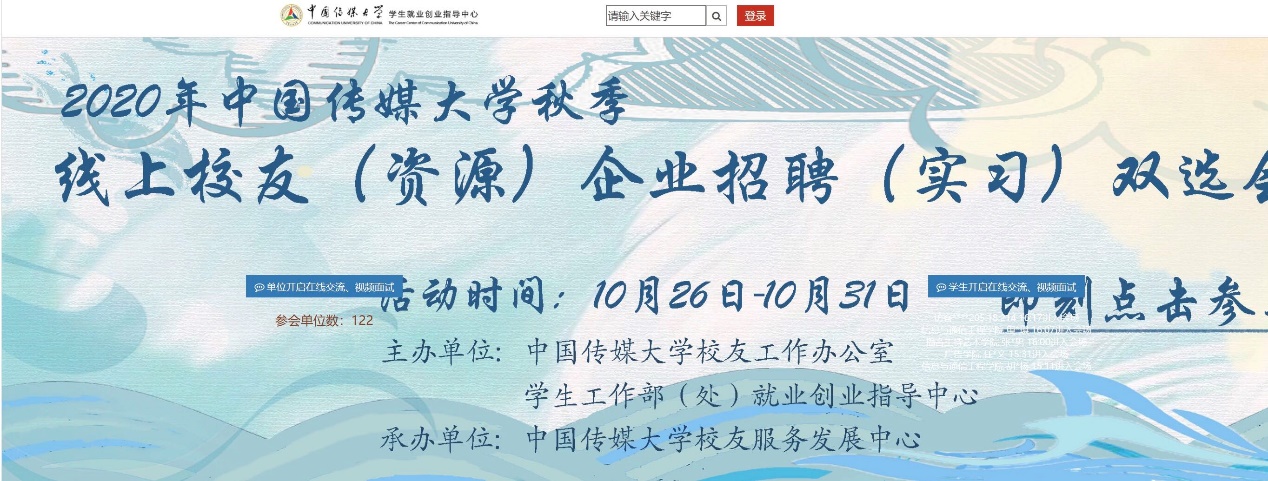 (通讯员 杨舟遥 刘沃若 安思仪 李盈萱)10月26日至31日,由校友工作办公室、学生工作部(处)就业创业指导中心(以下简称“就业中心”)联合举办的2020年秋季“录途·校友(资源)企业招聘(实习)网络双选会”顺利举办。根据疫情防控常态化的工作要求,本次双选会充分发挥网络的信息交互优势,采用“线上简历投递—文字视频”等方式,实现了无接触的一对一面试,为在校生提供了就业岗位,也为校友(资源)企业创造了招聘人才的平台。