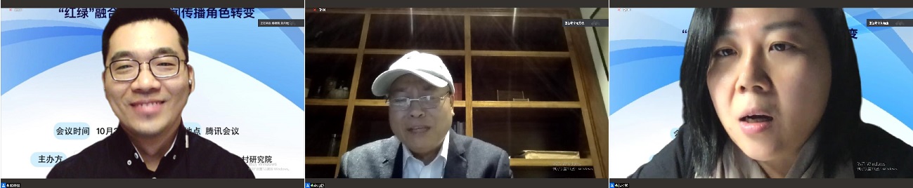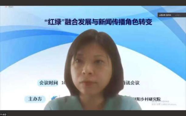 开幕式上,中国传媒大学传播研究院院长李舒、河阳乡村研究院执行院长赵月枝代表主办方致辞,中国传媒大学传播研究院副研究员龚伟亮主持开幕式。李舒院长指出,2020年是全面建成小康社会收官之年,也是“绿水青山就是金山银山”理念提出15周年。在协同推进脱贫攻坚和乡村振兴,打造凸显社会主义生态文明的全面小康样本的生动实践中,新闻传播学界也应当有所思考、有所作为。这种思考和作为既包括以全球视野来关注丰富的乡村文化实践,关注具有重要意义的文化治理、基层传播等命题,也包括去思考在以人民为中心、注重生态价值的“红绿”融合发展道路上新闻传播的职能定位、角色转变等等一系列命题,这也是举办此次会议的初衷。此次与河阳乡村研究院共同举办此次视野开阔、意蕴深远的云端论坛,也是两个研究院多年来坚持前沿定位和多元探索的具体互动。在致辞的最后,李舒教授满怀期许地表示,正如这次会议主题中“红绿”融合所带来视觉冲击和瑰丽想象,期待此次有关新闻传播在新形势下角色转变的研讨,能开启我们立足中国大地做学术的新视野和新启迪。期待大家共同携手,深耕不辍,把有价值的学术思考书写在中国的大地上,让新闻传播学与其他哲学社会学科之间有机交融、钟鼓和鸣、生生不息。