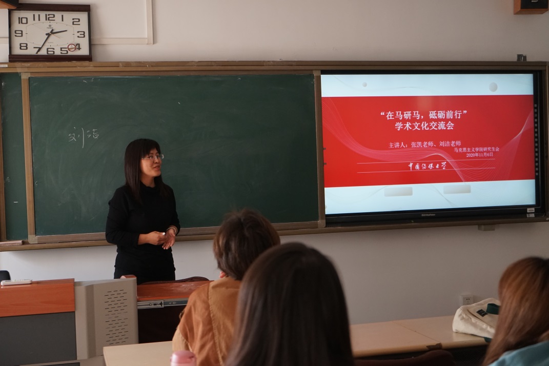 (通讯员 王玉婷)为提升2020级研究生的学术科研能力和水平,为新生答疑解惑,在马克思主义学院党总支的指导下,学院研究生会于11月6日下午在52号楼101教室举办了“在马研马,砥砺前行”学术文化交流会,马克思主义学院张凯、刘洁两位讲师为同学们作了指导,2020级全体研究生参加现场交流。